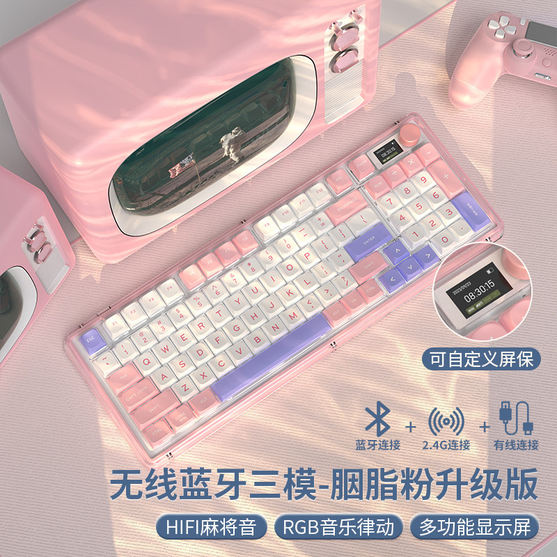 EWEADN V99 97% three-mode Mechanical keyboard Wireless Bluetooth Gaming Mahjong Tone keyboard with small screen