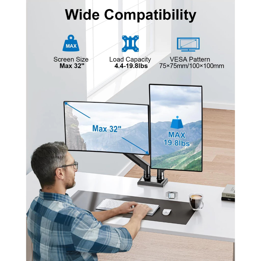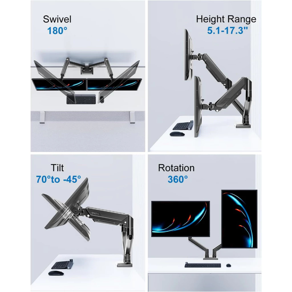 Dual Monitor Arm Desktop Mount Bracket 17-34 Inch 20KG Fully Adjustable Full Dynamic Swivel Monitor Arm