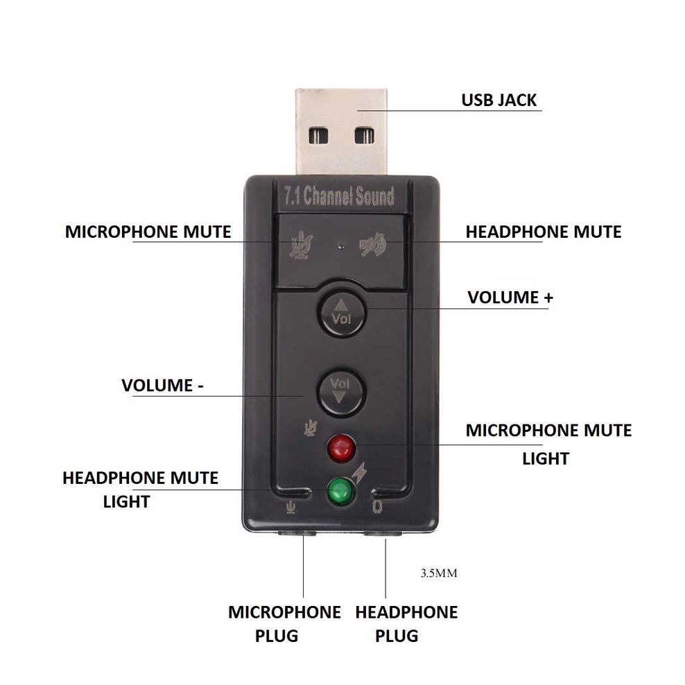 EXTERNAL USB SOUND CARD ADAPTER USB2.0 TO 3.5MM JACK HI-FI MAGIC VOICE 7.1 CHANNEL AUDIO & MICROPHONE SOUND ADAPTER SA01