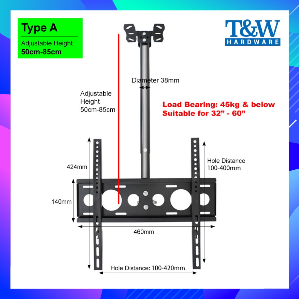 EXTRA LONG Bracket TV Ceiling Full Motion Hanging TV Mount Bracket for 26" - 63" / 40" - 72" TV [T&W Hardware]
