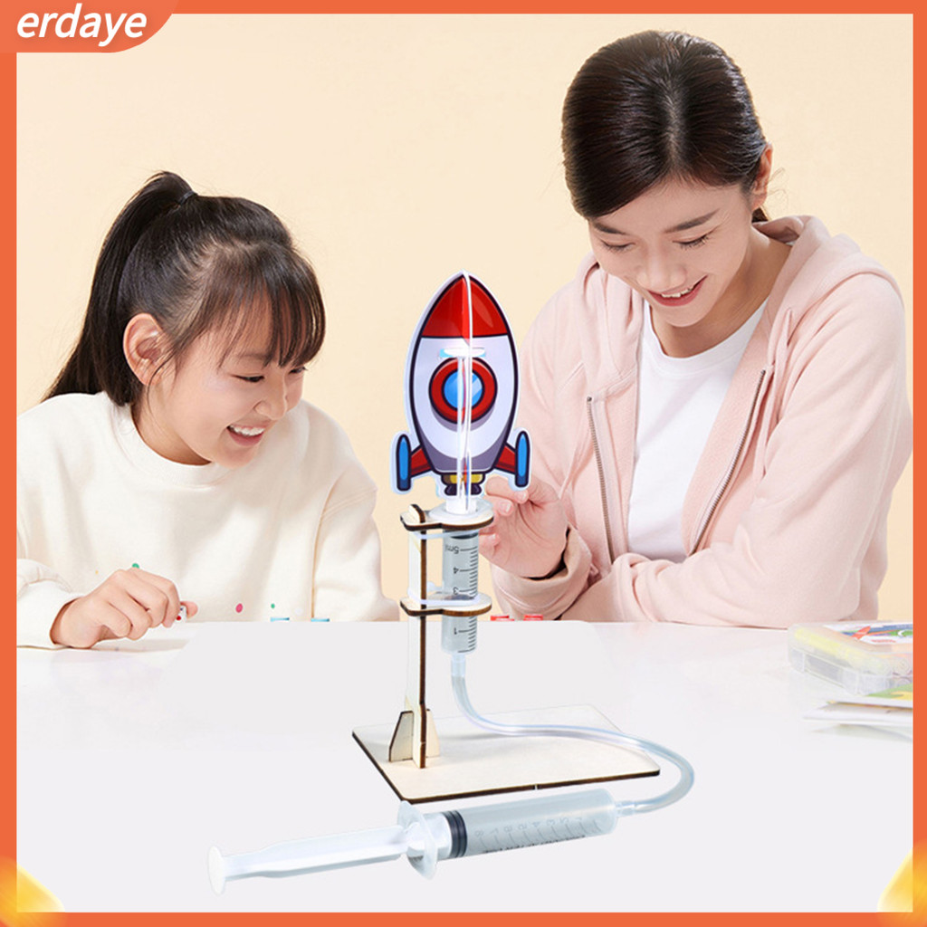 EYD- Rocket Launcher Construction Set Educational Rocket Launcher Toy Diy Air Powered Rocket Launcher Kit Stem Educational Toy for Kids Handmade Wooden Puzzle Science