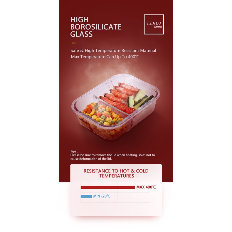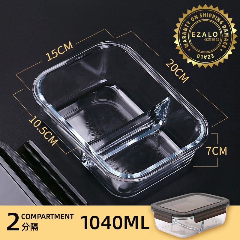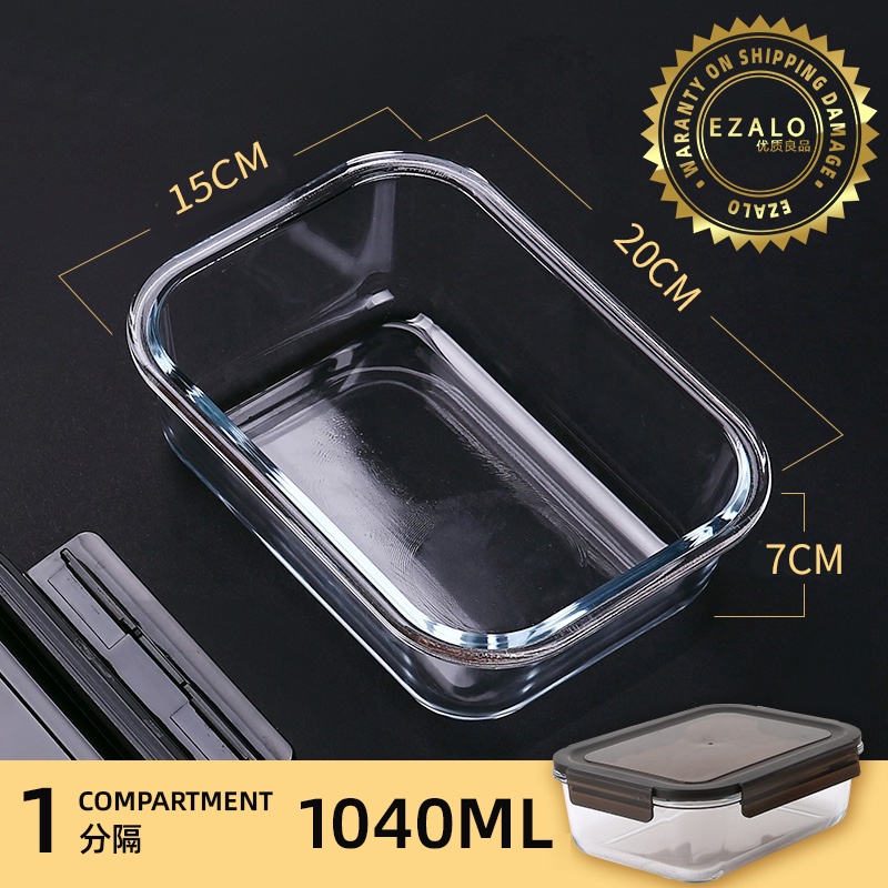 EZALO High Borosilicate Glass Storage Container Compartment Airtight Lunch Box (400/630/1040/1500ml)