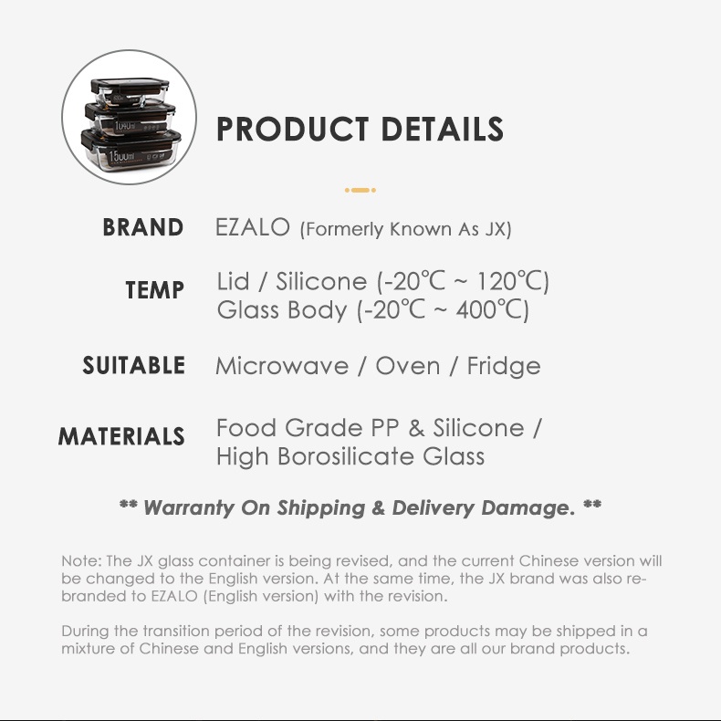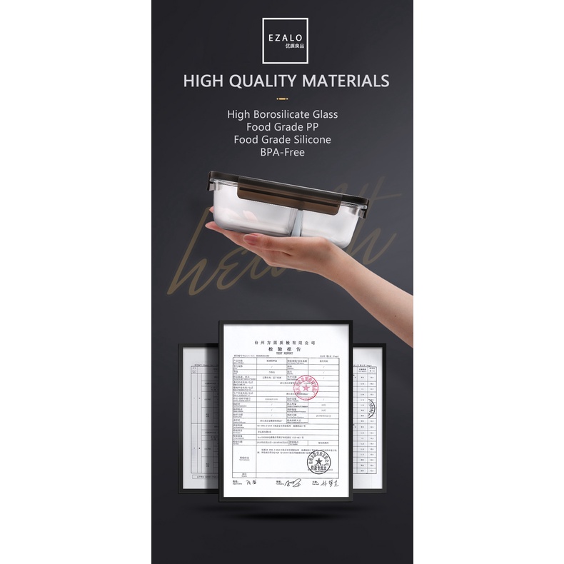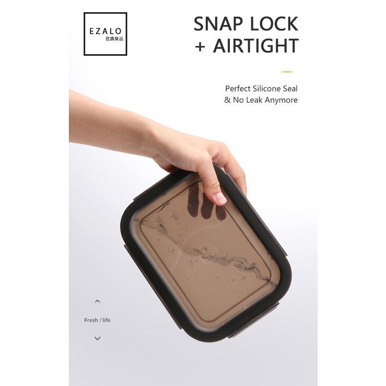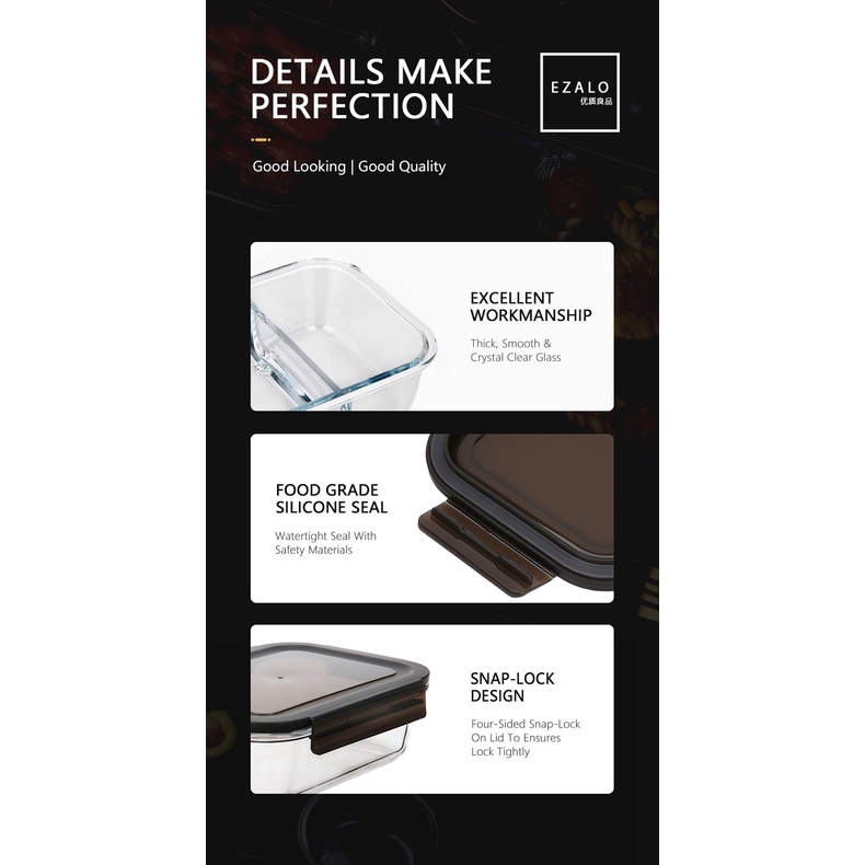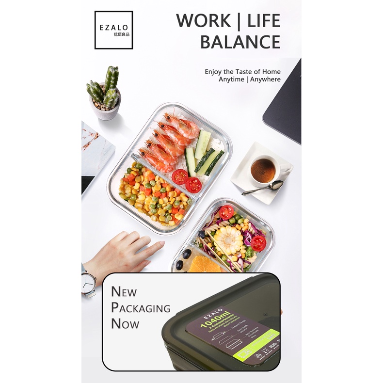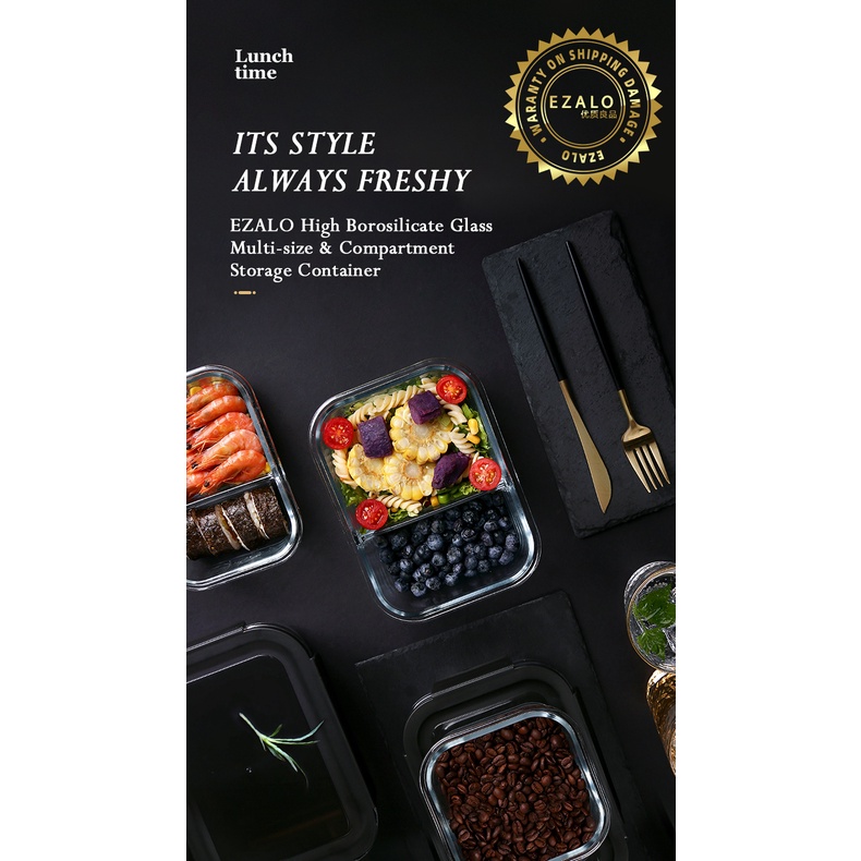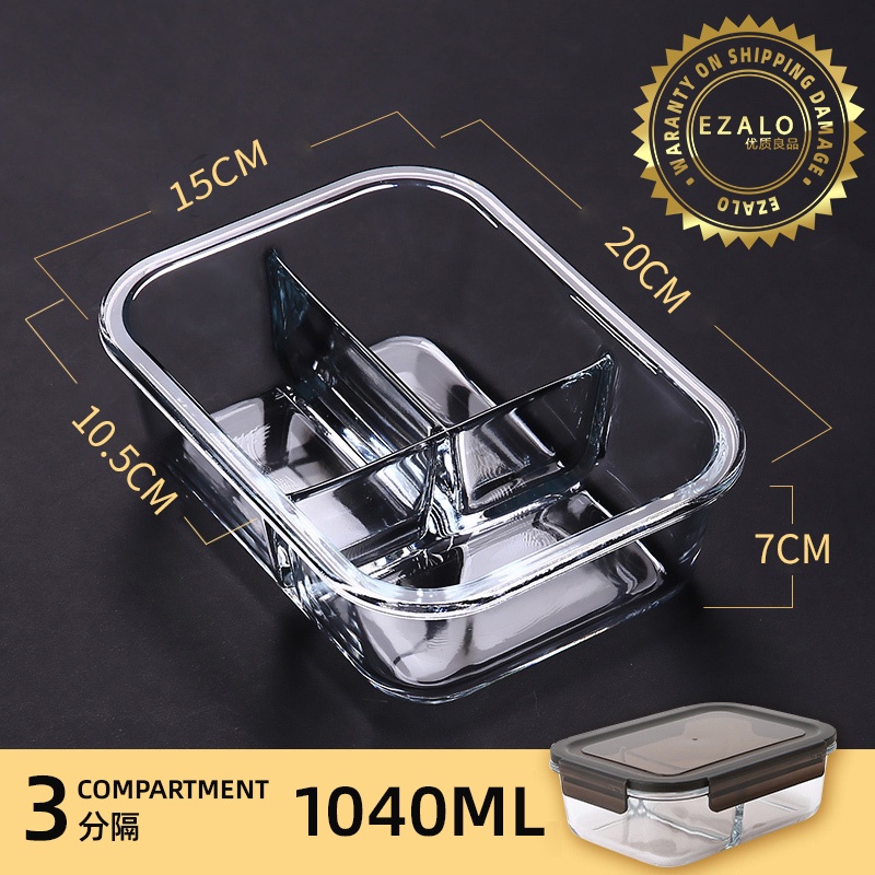 EZALO High Borosilicate Glass Storage Container Compartment Airtight Lunch Box (400/630/1040/1500ml)