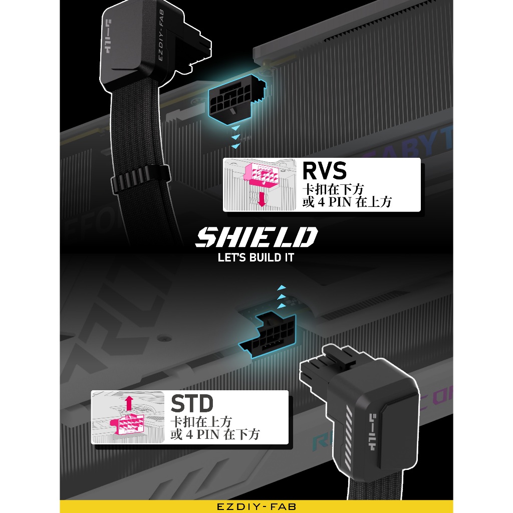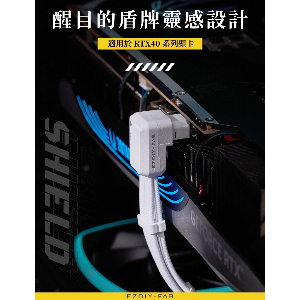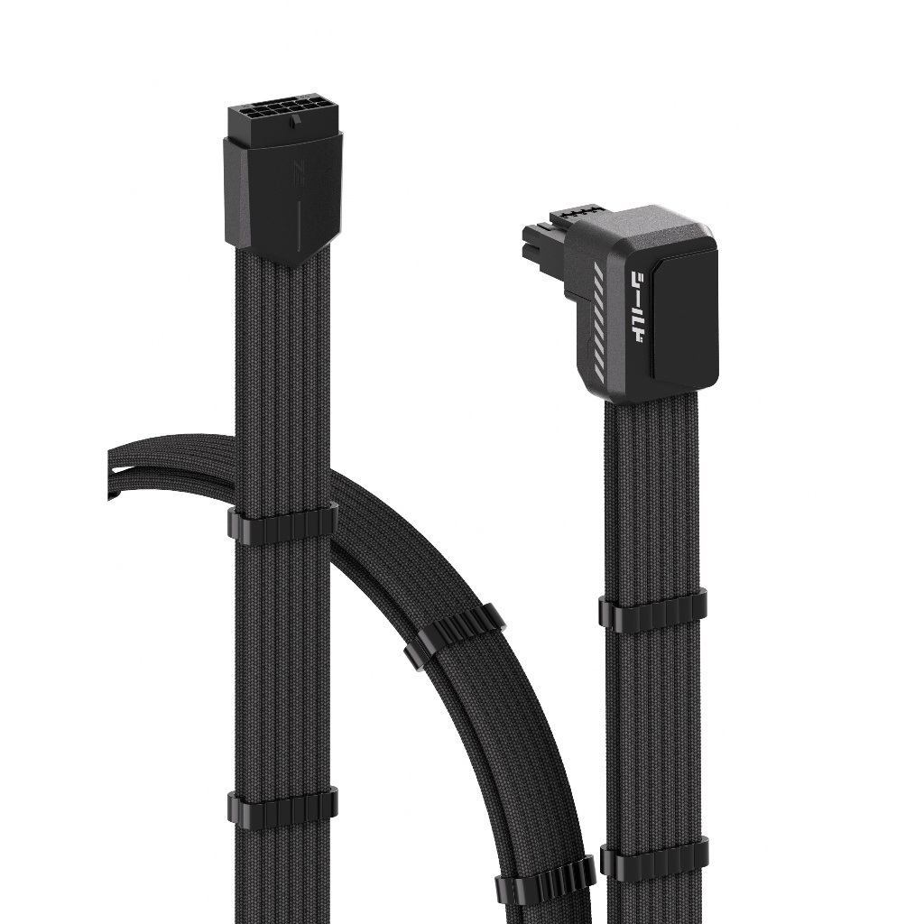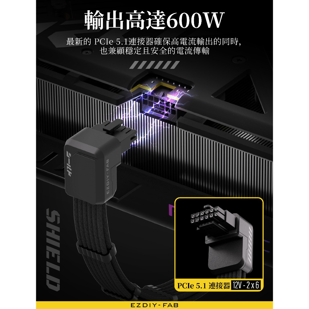 EZDIY-FAB Shield Series Reverse RVS 90 Degree 12V-2x6 GPU Adapter Extension Braided Cable Black/White PCIe 5.1