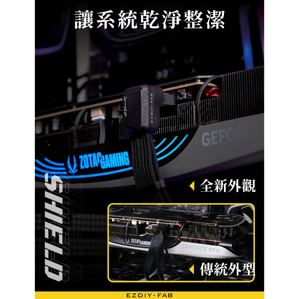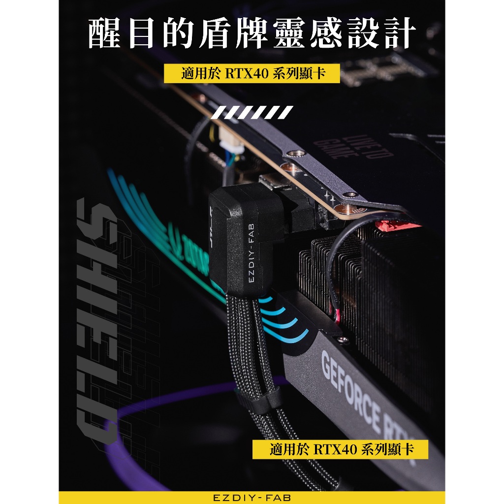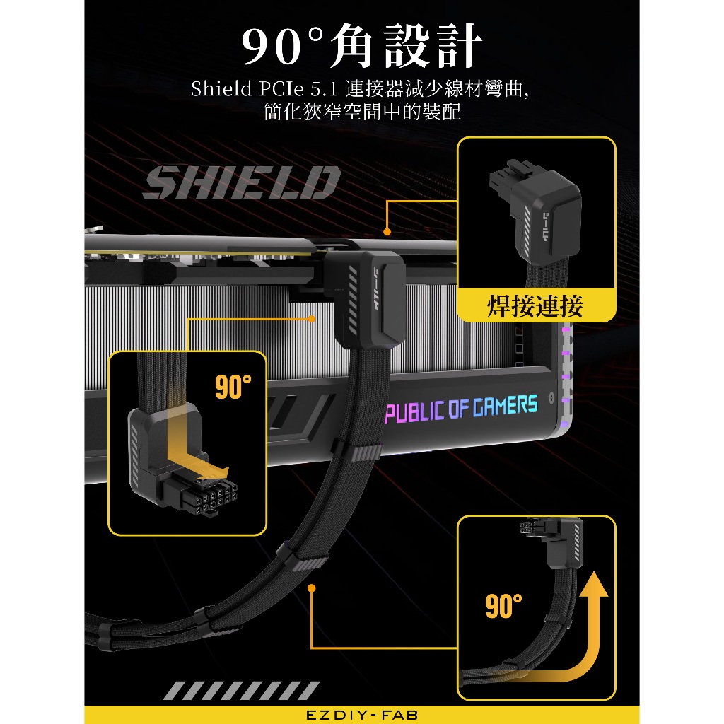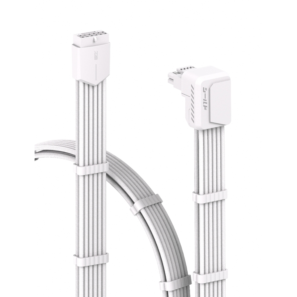 EZDIY-FAB Shield Series Reverse RVS 90 Degree 12V-2x6 GPU Adapter Extension Braided Cable Black/White PCIe 5.1
