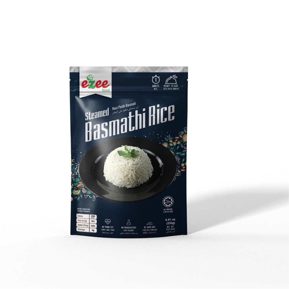 EZEEFOOD NASI PUTIH / STEAMED BASMATHI RICE (WHITE RICE) 250G LOW GI, GLUTEN FREE READY TO EAT MRTE / RTE MEALS