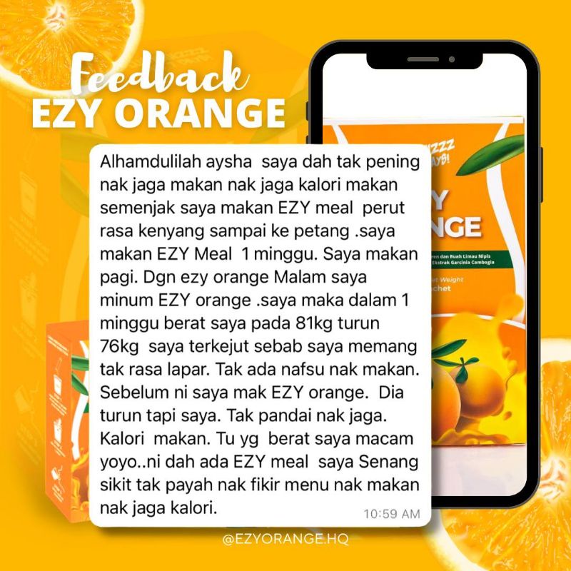 EZY MEAL Ezy Orange | Meal Replacement Drink | Weight Loss Supplement | Original HQ Aysha Alam |Free Gift Shaker Ez Oren