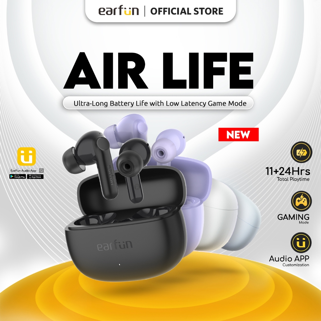 EarFun Air Life Bluetooth 5.4 True Wireless Earbuds with Ultra-Long Battery Life and Gaming Mode