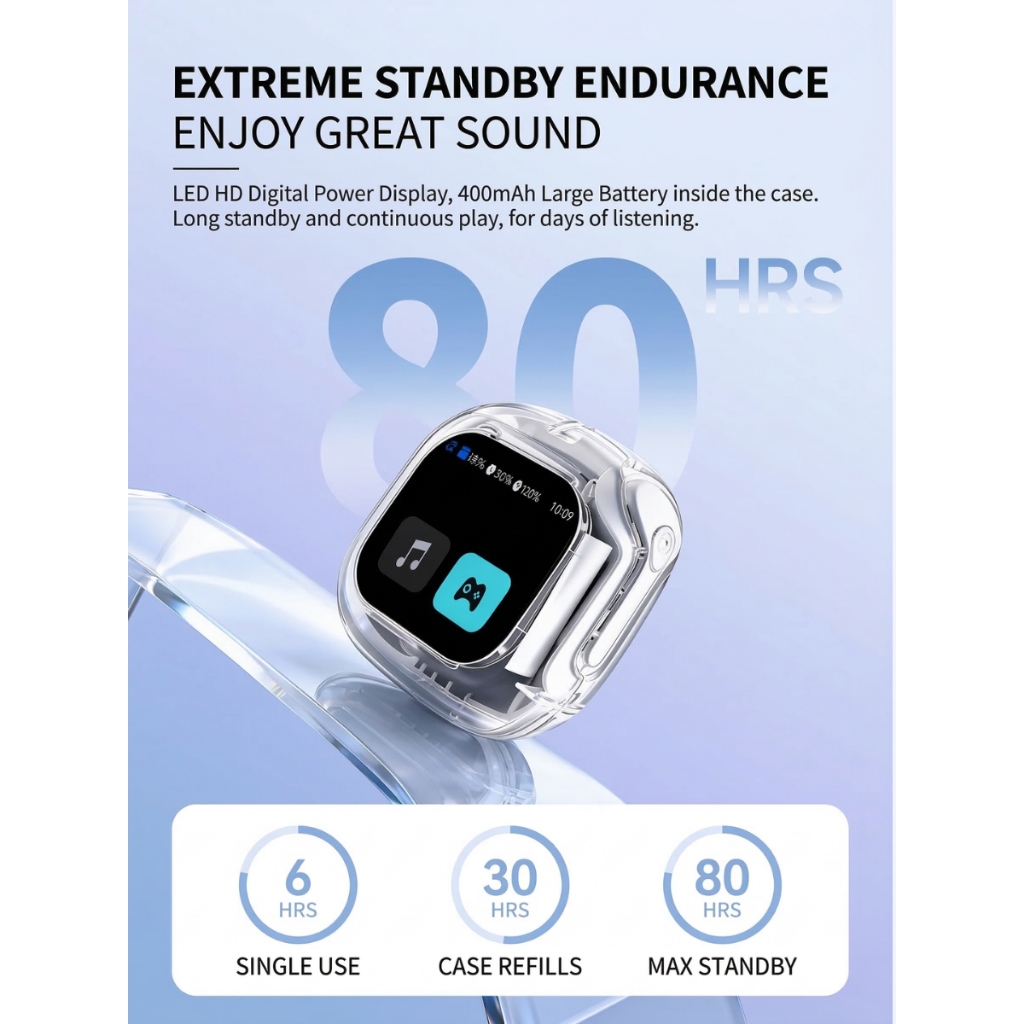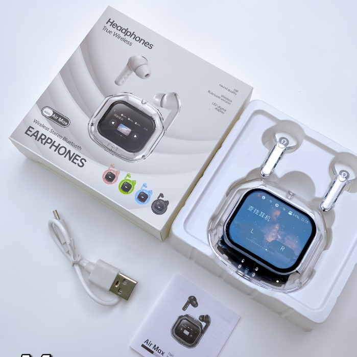Earbuds Screen TWS Wireless Bluetooth Headset Full Color Touch Screen Transparent Earphones