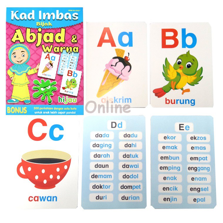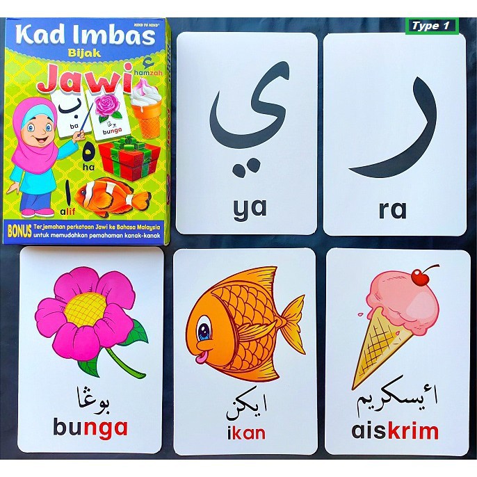 Early Learning Flash Card Kad Imbasan JAWI SUKU KATA ABC PHONIC NUMBER FRUIT ANIMAL CARD KAD Kids children