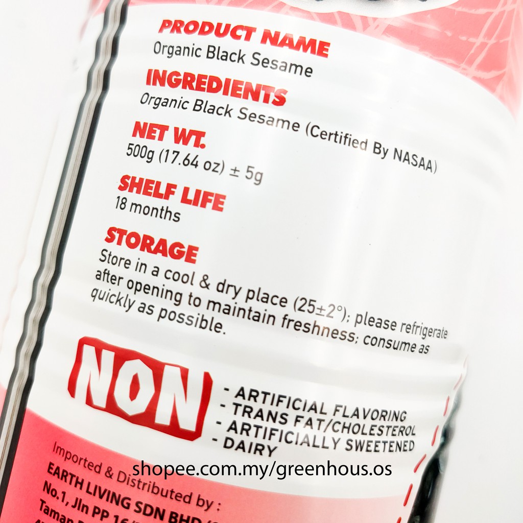 Earth Organic Black Sesame Powder 500g - Australia
