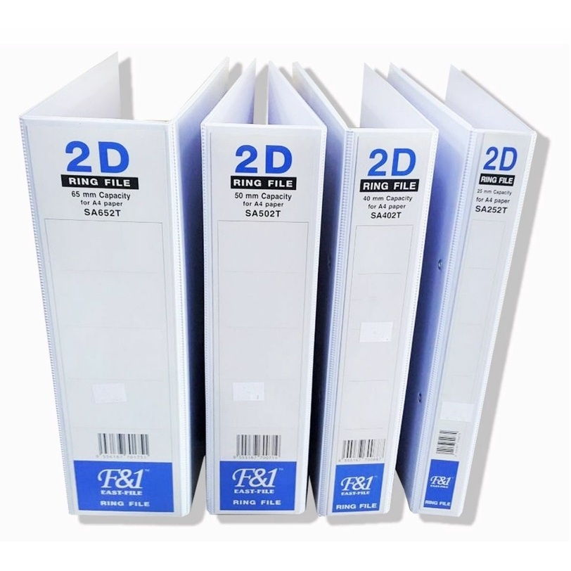 East File F1 PVC 2D Ring File 16mm /25mm / 40mm / 50mm / 65mm A4 - White