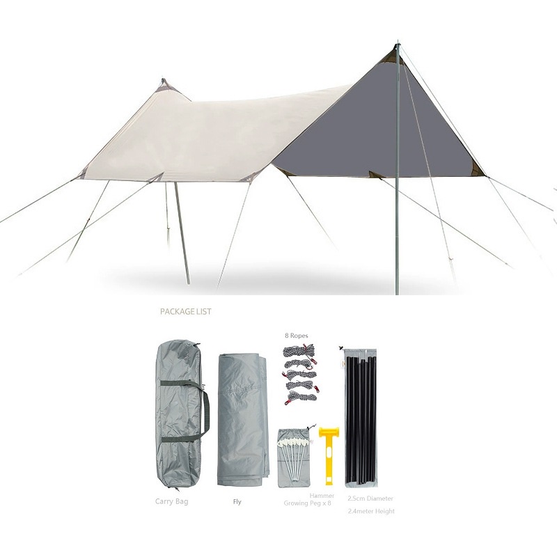 Ecomall 3x5 meter Flysheet Tarps Canopy Fly Sheet Camping or Multipurpose Usage Tent FREE Poles Pegs Ropes Hammer