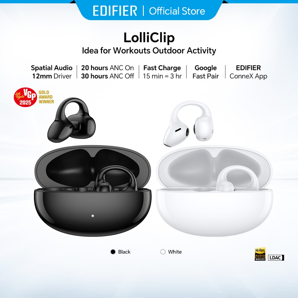 [ACTIVE NOISE CANCELLATION] Edifier LolliClip Hi-Res Sport Open-Ear Bluetooth WIth Google Fast Pair Earphones