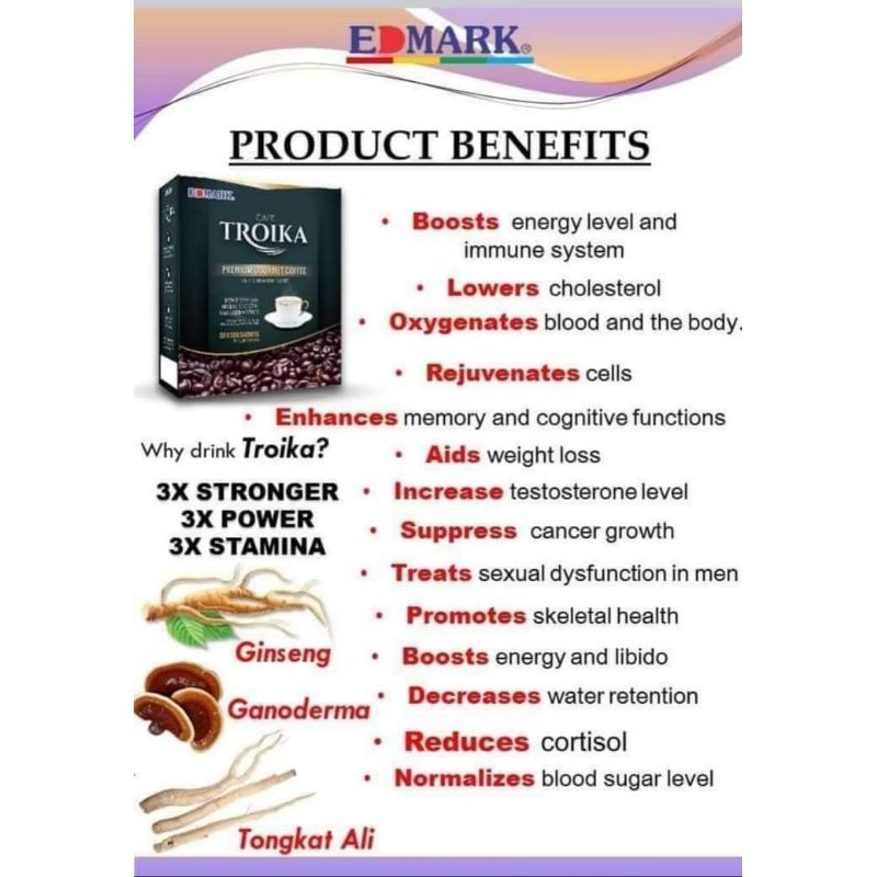 Edmark Cafe Troika Premium Gourmet Coffee (Ginseng, Tongkat Ali & Gandoderma Extract) 20x20g Sachets (Exp: Mar/2026) NEW