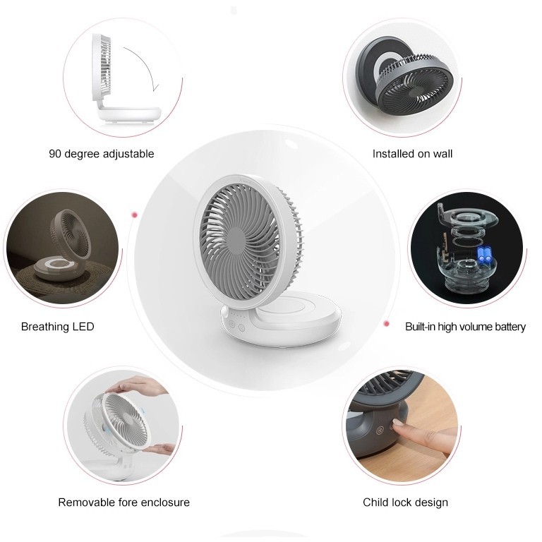 Edon Electric Fan Portable USB Desktop Mini Fan 4 Speeds Auto Rotation Night Light for Home Office Enjoy kitchen fan wall fan kipas Raya Ramadan Folding fan Wireless fan