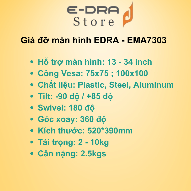 EDRA EMA7302 / EMA7304 / EMA7305PD / EMA7306PD monitor stand Arm (Screen support: 22 - 34 inches)