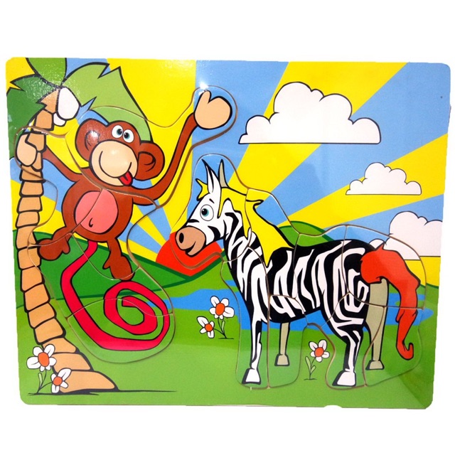 Educational Children Puzzle Animal Puzzle Monkey & Zebra Puzzle Montessori Early Learning Kids Jigsaw Puzzle Ready Stock
