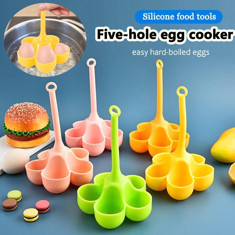 Egg Boiler Holder Heat-resistant Cooker Silicone Egg Steamer Tray with 5 Grids Durable Egg Poaching Boiling Cooker smbmy