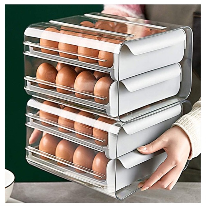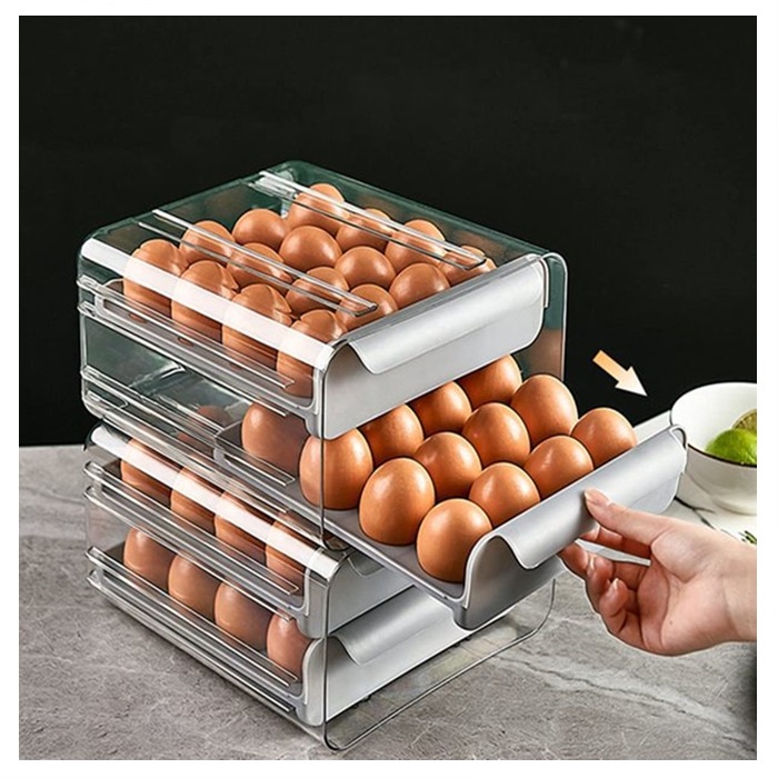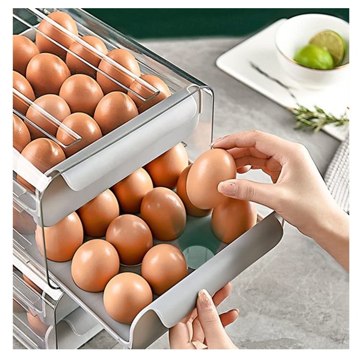 Egg Fresh-Keeping Box Kitchen Refrigerator Double-Layer Storage Egg Tray Rack Clear PP Plastic Preservation Case