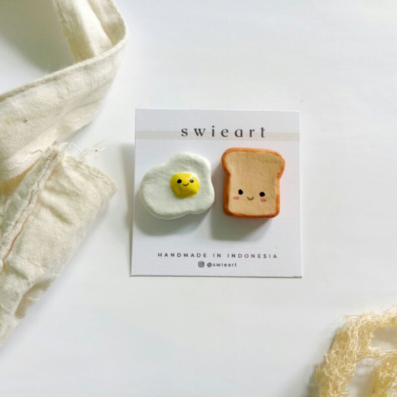 Egg and toast Handmade Air Dry Clay Pins with Glossy Finish | Brooch | Accessories | Cute Pins | Cute Pin by Swieart
