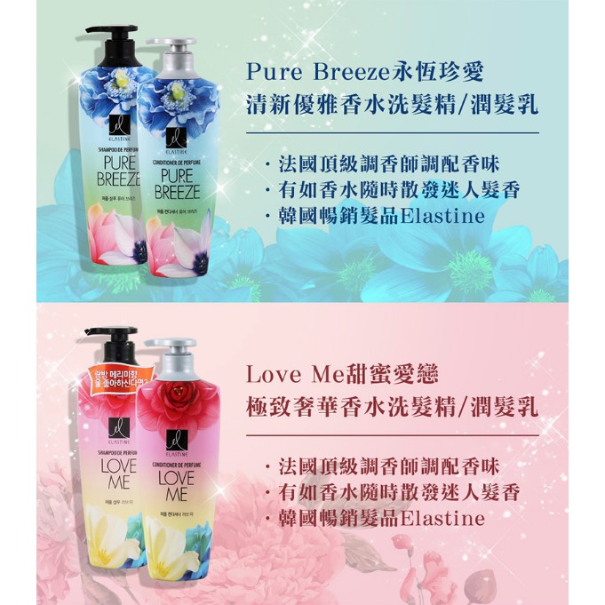 Elastine Shampoo Pure Breeze / Love Me / Spring Prolugue Shampoo Conditioner (1set)