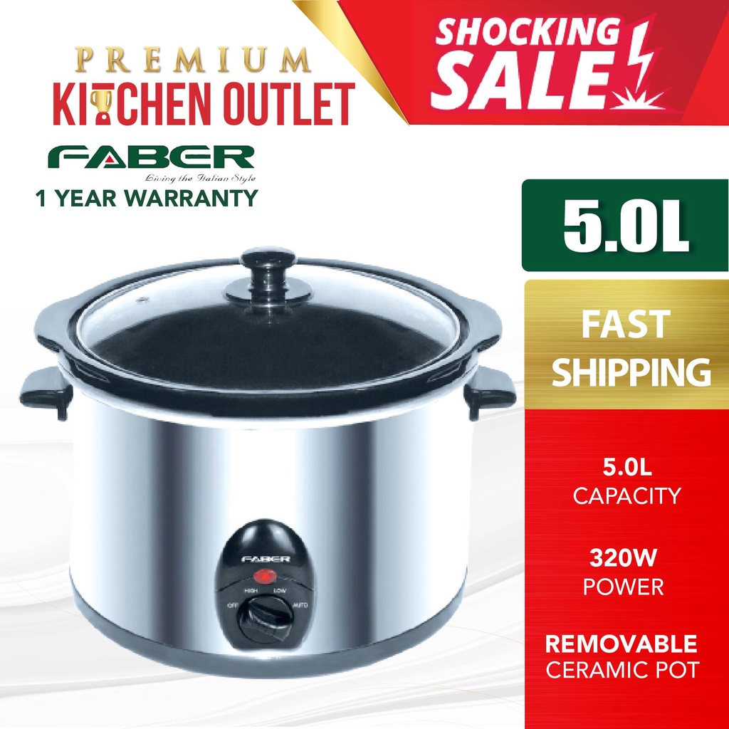 Elba 4.5L Slow Cooker Variable Thermostat Control ESC-K4569 | Faber Italy 5.0L Stainless Steel Slow Cooker FSC550SS