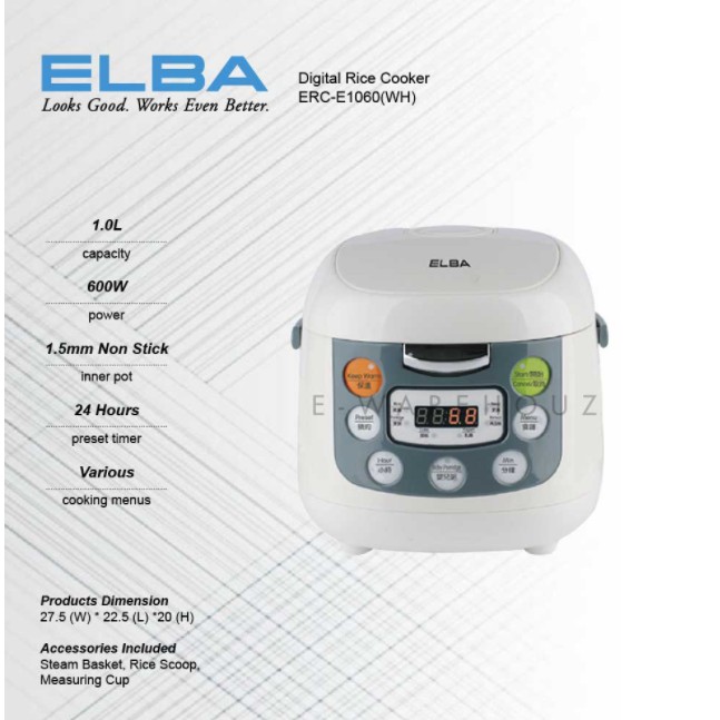 Elba Microcomputer Rice Cooker (1.0 L) ERC-E1060(WH)
