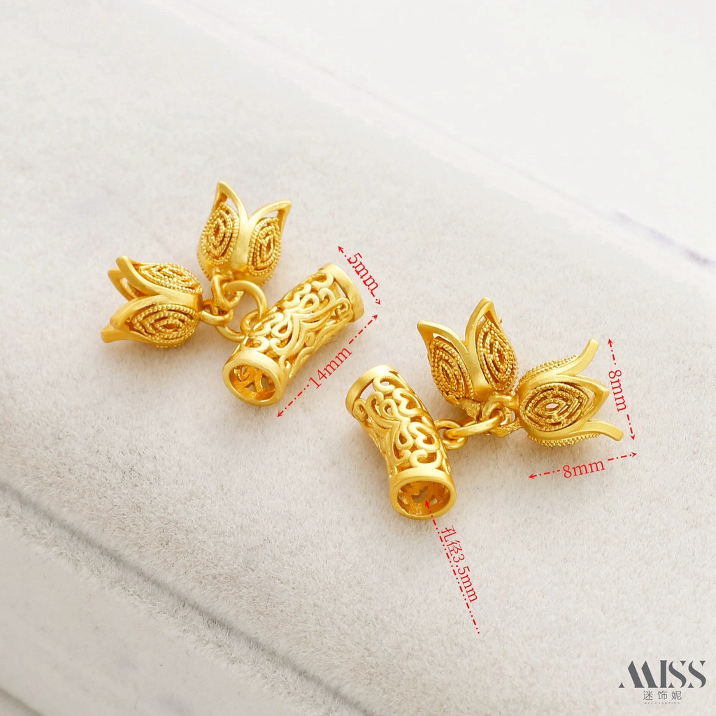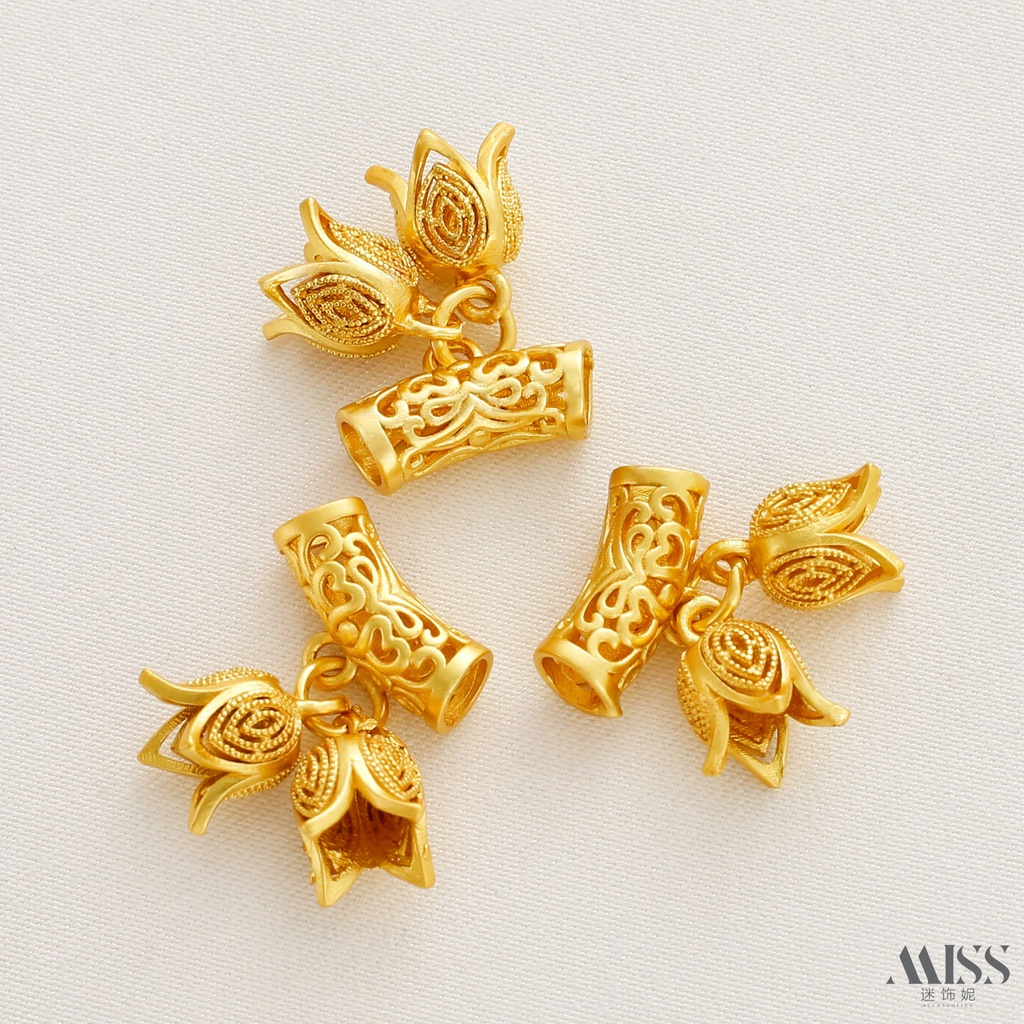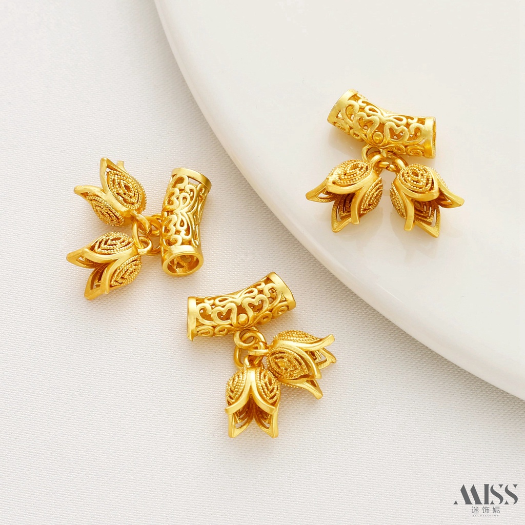 Elbow Spacer Beads Ancient Method Matte Gold Color Retention Hollow with Two Flower Buds Pendant diy Bracelet Necklace Beaded Jewelry Accessories