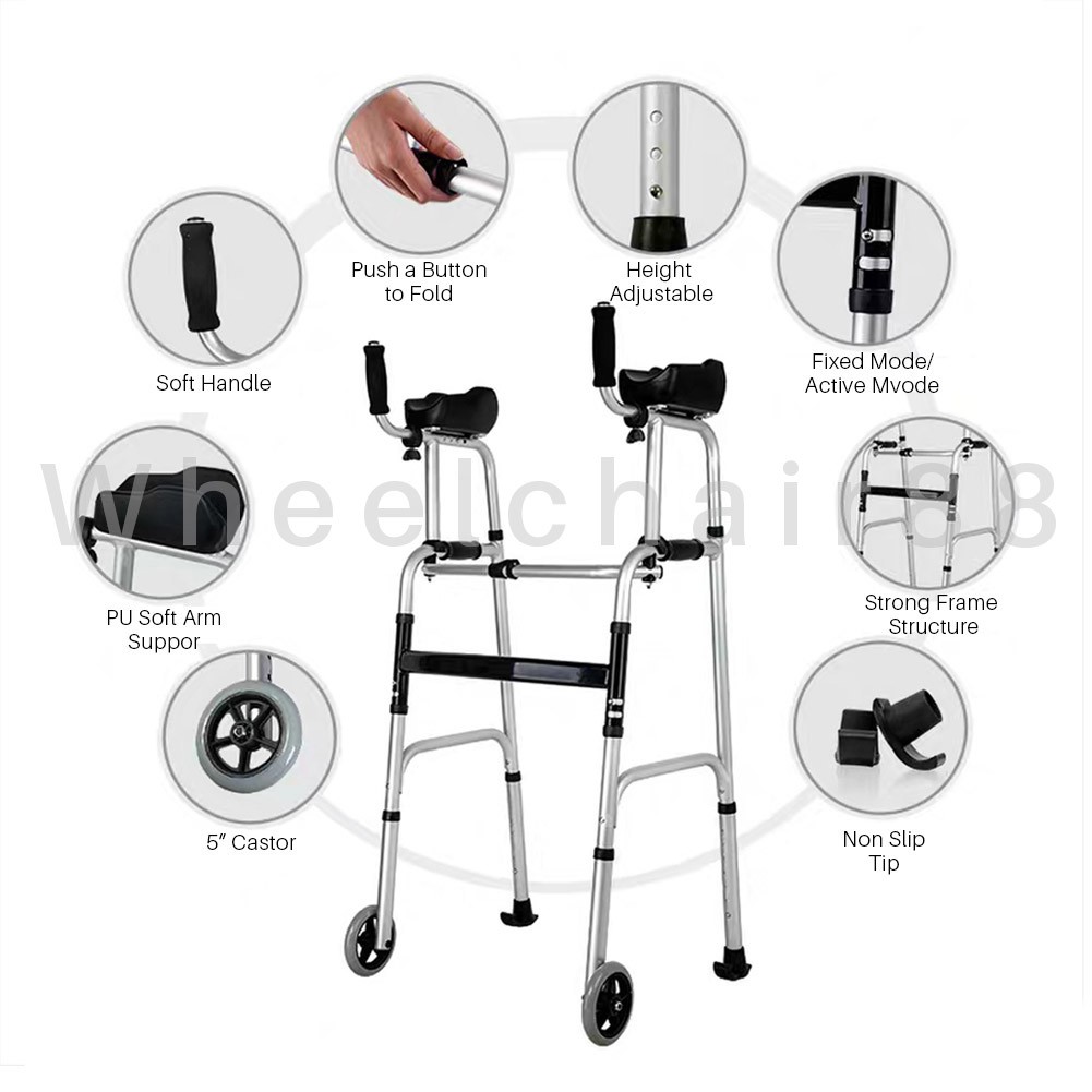 Elbow Walker - 7 Level Height Adjustments, Padded Elbow Support, 2 Front Wheels, 2 Rear Stopper, Weighs 4 kg, 2 Modes