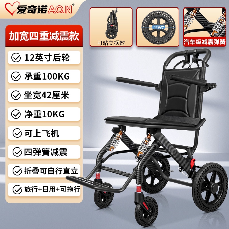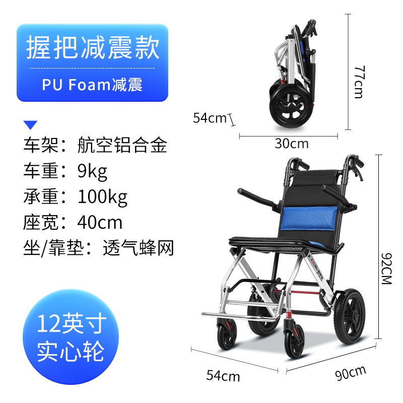Elderly Wheelchair Foldable Portable Shock-Absorbing Ultra-Light Household Trolley Handicapped Patient Multifunctional Shock-
