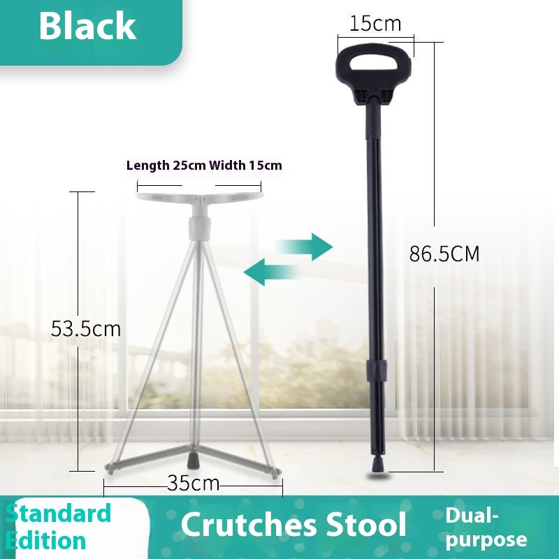 Elderly walking stick stool chair with seat four-legged portable adjustable folding walking stick