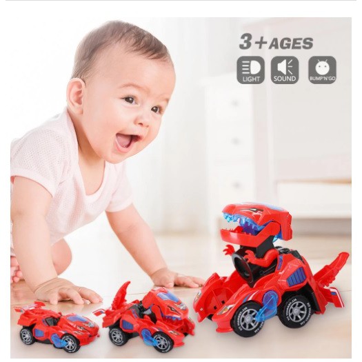 Electric Auto-Deformed Dinosaur Car Transform Car to Dino Light & Sound Auto-deformed Dino Racer Kid Car