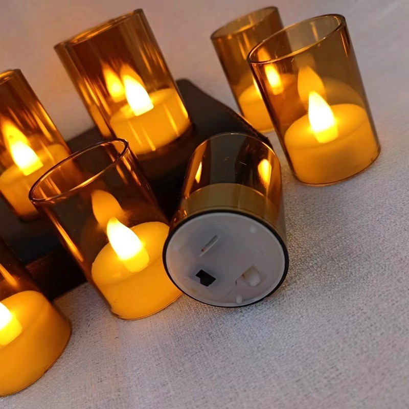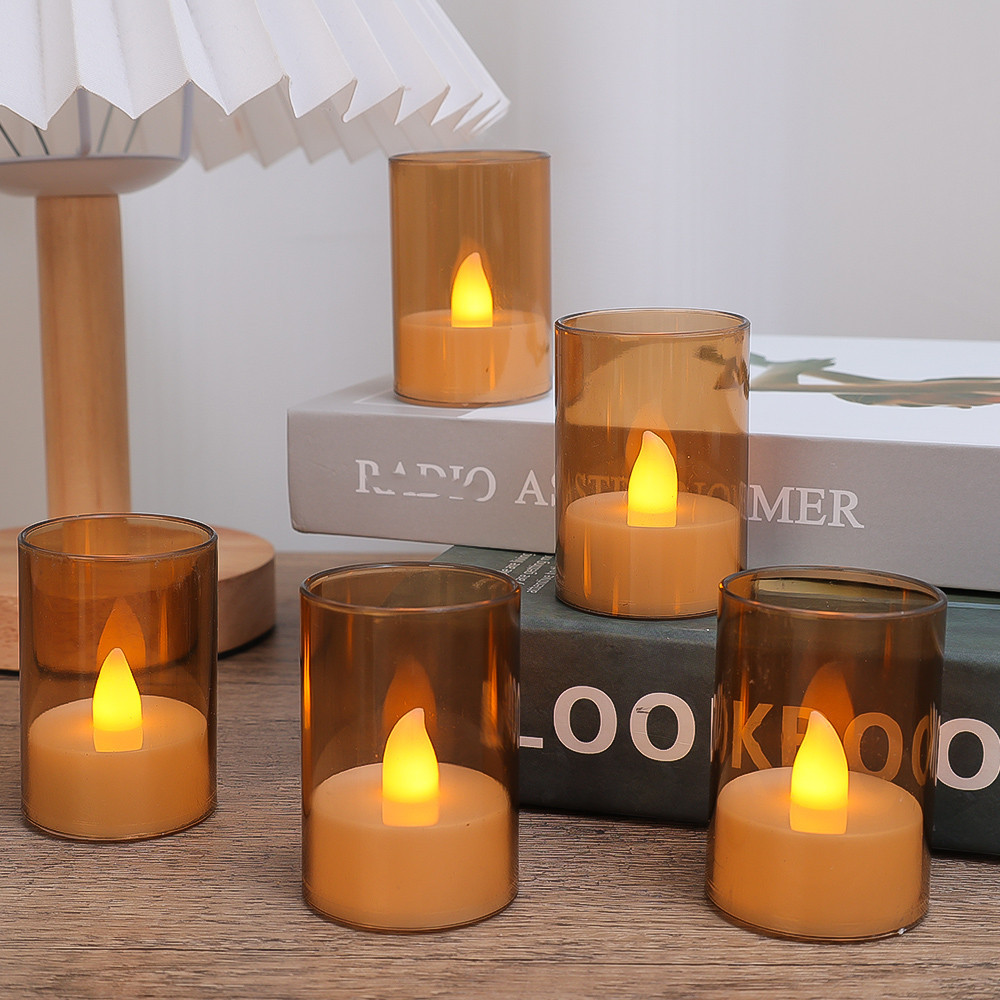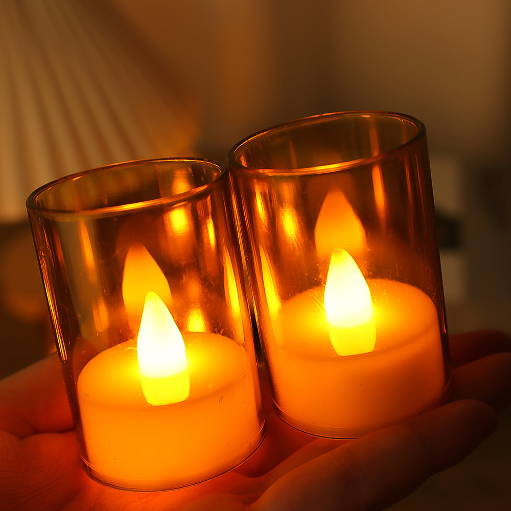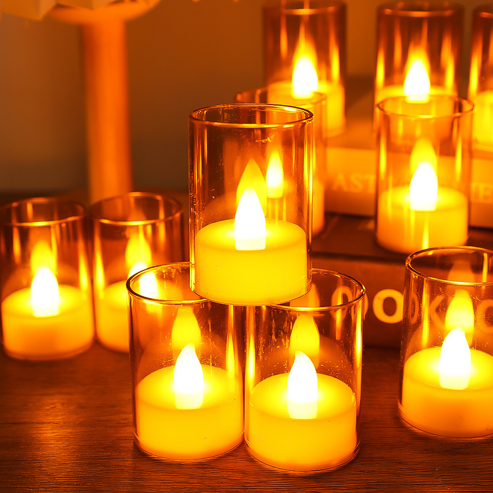 Electric Candle Light - Acrylic Cup LED Flameless - Home Wedding Christmas Decor - Romantic Candles Lamp - Flashing Battery Powered Lighting - Warm White Wave Tealight