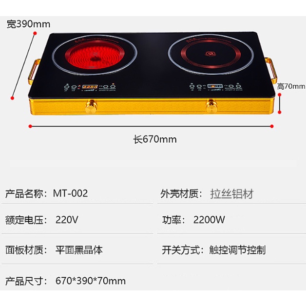 Electric Cook-top Built-in commercial 2 burner double induction cooker and infrared cooker ceramic cooker stove