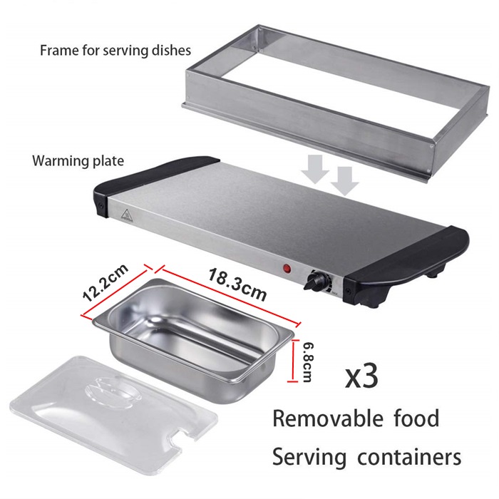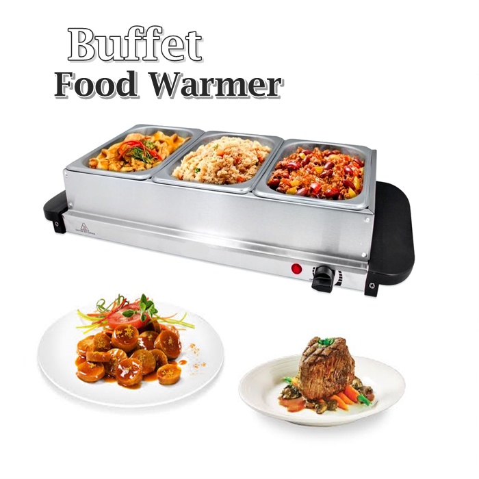Electric Food Warmer Stainless Steel 3 Buffet Serving Tray
