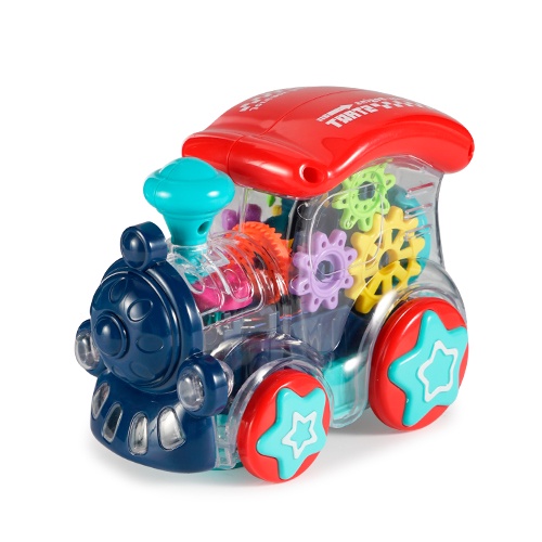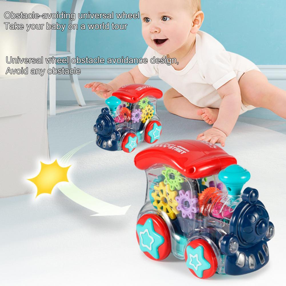 Electric Gear Train Toy Clear Omni-directional Wheel Train Toy Colorful Cartoon Transparent Universal Wheel Toy Train With Sound & Light