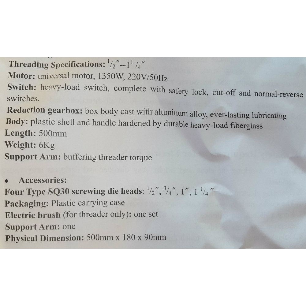 Electric Hand-Held Power Threader 1350W ID37777