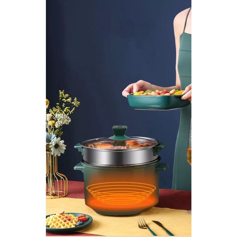 Multifunctional Electric Hot Pot, Stir-Fry, 4L Capacity Comes with Stainless Steel Steamer Rack with Non-Stick Pot
