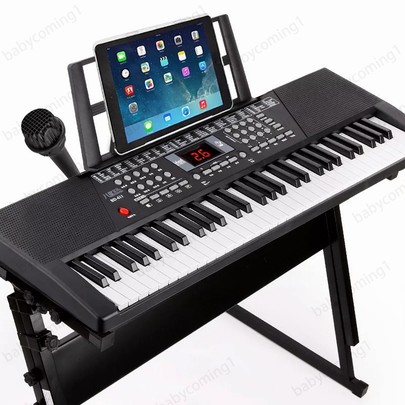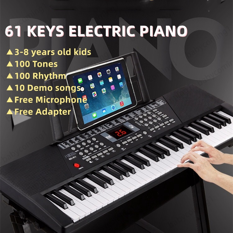 【Ready Stock】61 Keys Electric Piano Free Microphone Digital Electronic Learning Keyboard Package Organ Elektronik