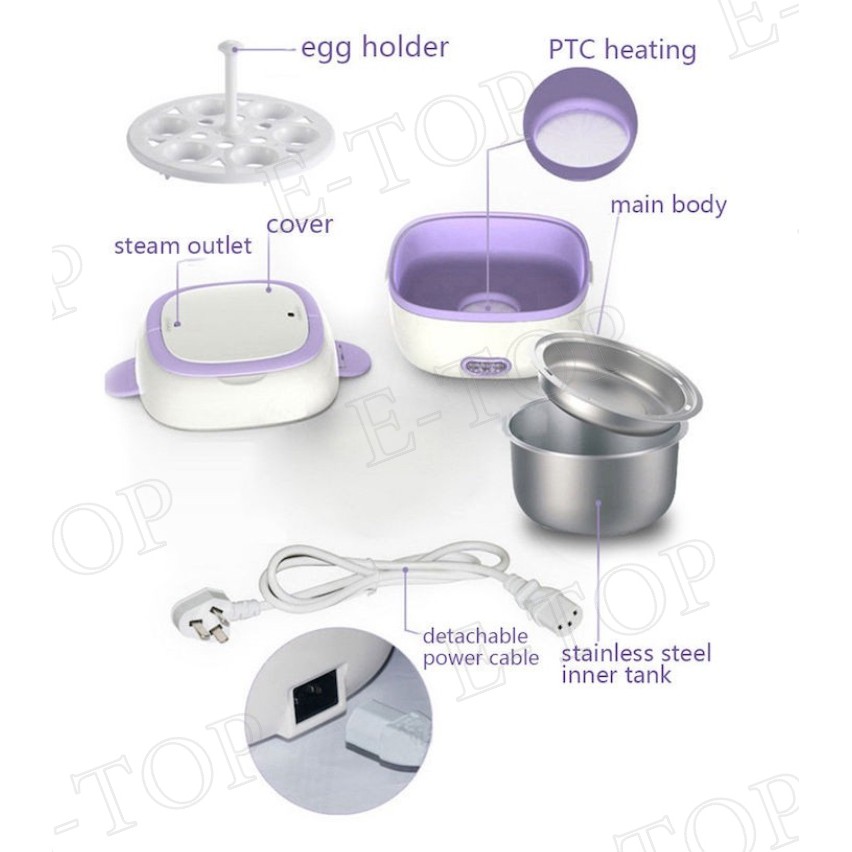 Electric Portable Mini Rice Cooker Food Steamer Heating Meal Lunch Box