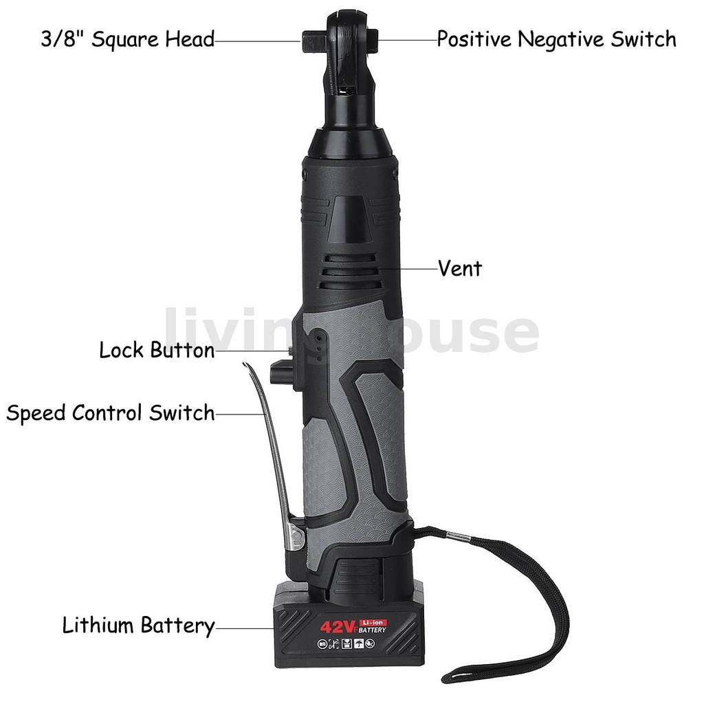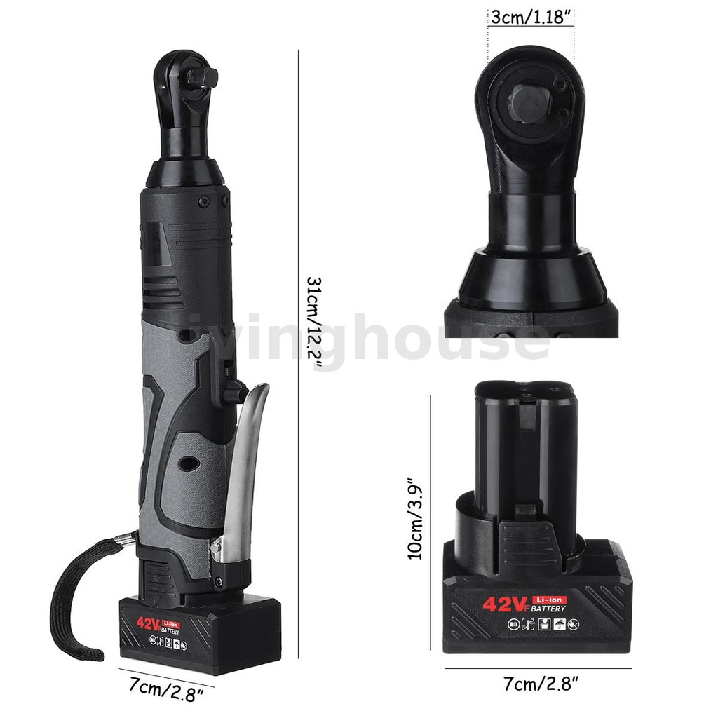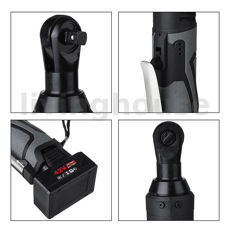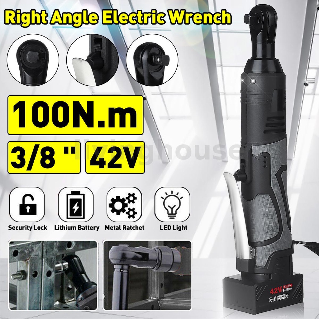 Electric Ratchet Right Angle Wrench Cordless W/1/2 Battery 3/8'' 42V 100Nm