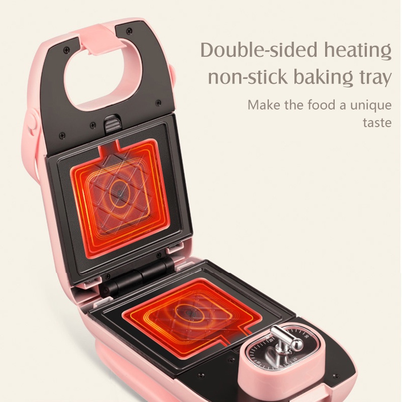 Electric Sandwich & Waffle Maker Auto Off Timer Timing Non-Stick Double Sided Baking Tray Toaster Breakfast Machine