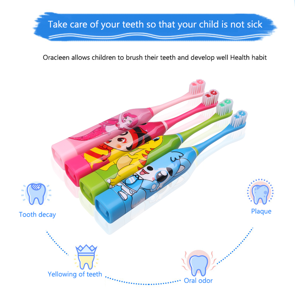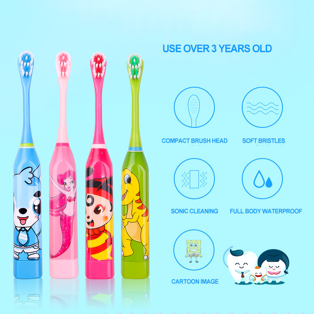 Electric Ultrasonic Toothbrush Children Electric Toothbrush Acoustic Wave Cute Soft Hair Electric Teeth Brush Double Sided Clean Children's Dental Care