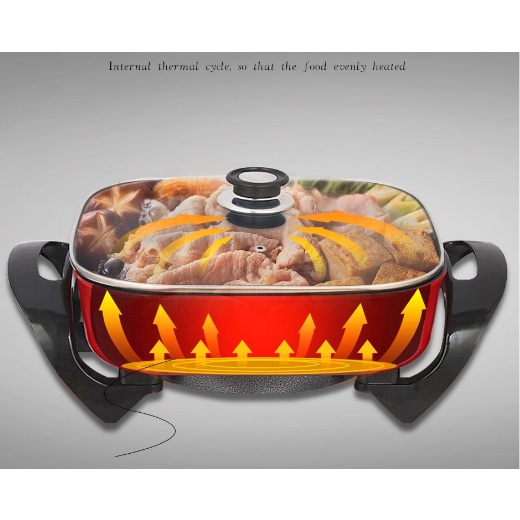Electric hot pot stove Red hot pot/Square non-stick hot pot pan 5 liter capacity Multi-purpose, safe, Korean style