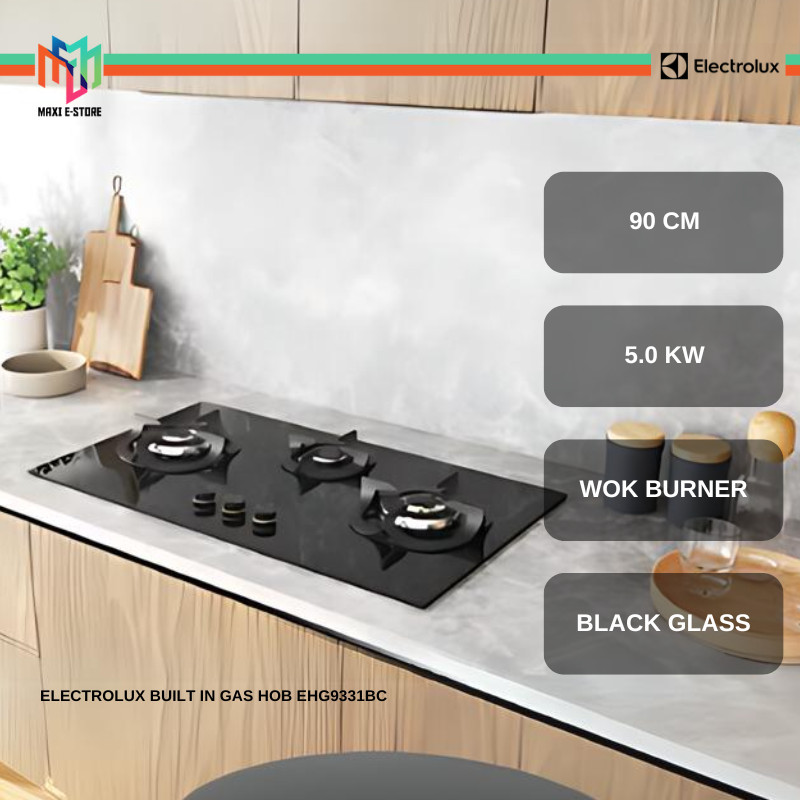 Electrolux EHG9331BC 90cm UltimateTaste 300 Built-in Gas Hob With 3 Cooking Zones 3 Blue Flame 5.0 kW Black Dapur Gas
