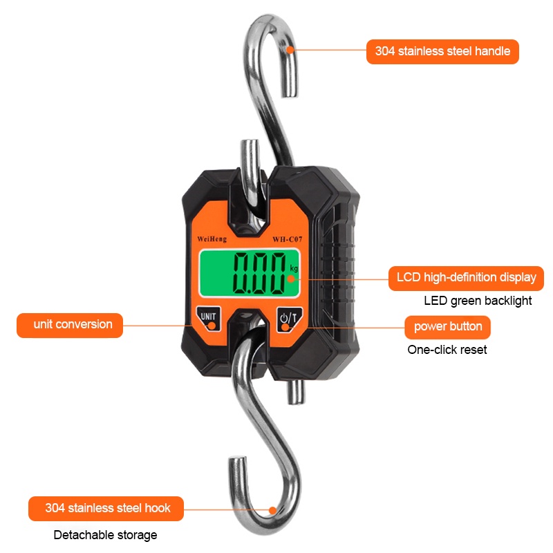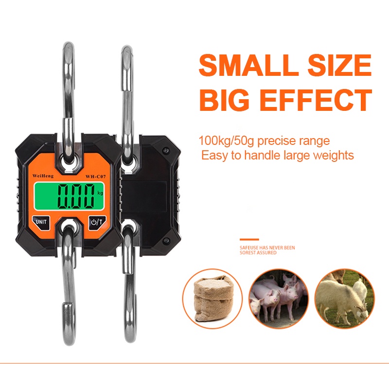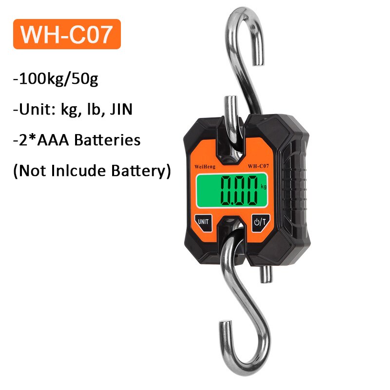 Electronic Hanging Scales 100kg 50g Digital Stainless Steel Hook Weighing LCD Crane Scale Loop Fish Heavy Duty Weight Balance