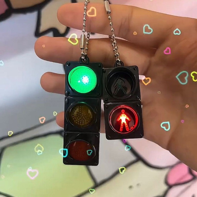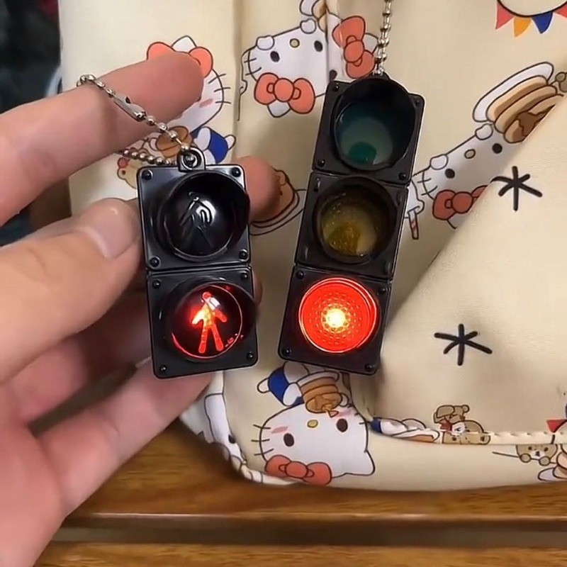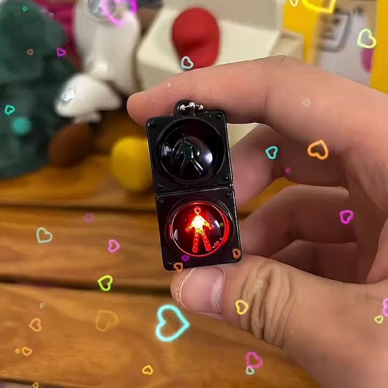 Electronic Traffic Light Keychain Bag Pendant Mini Cute Walking Light LED Luminous Keychain