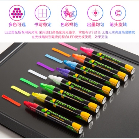 Electronic fluorescent board writing board with 8 colors Markers Flash Erasable light-emitting