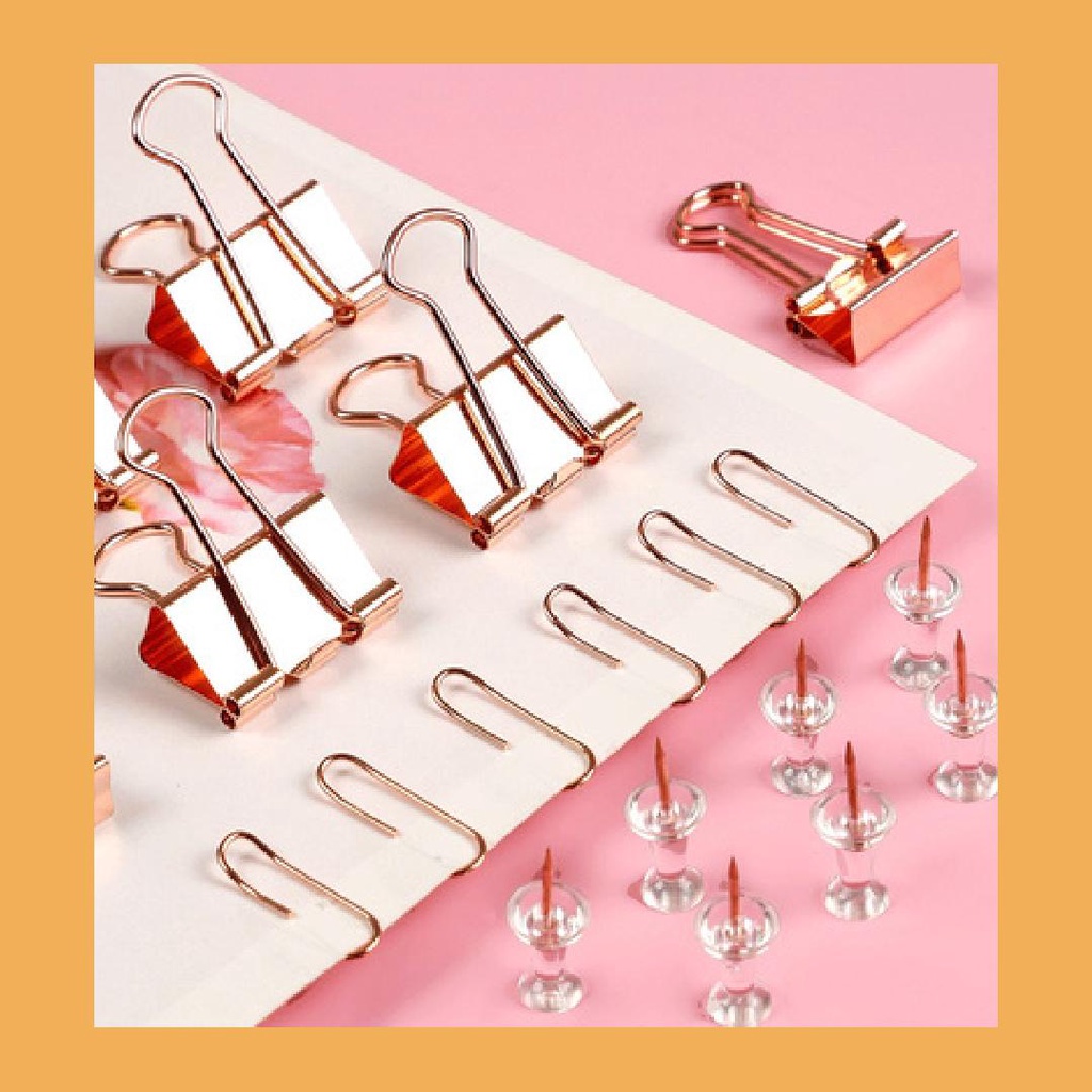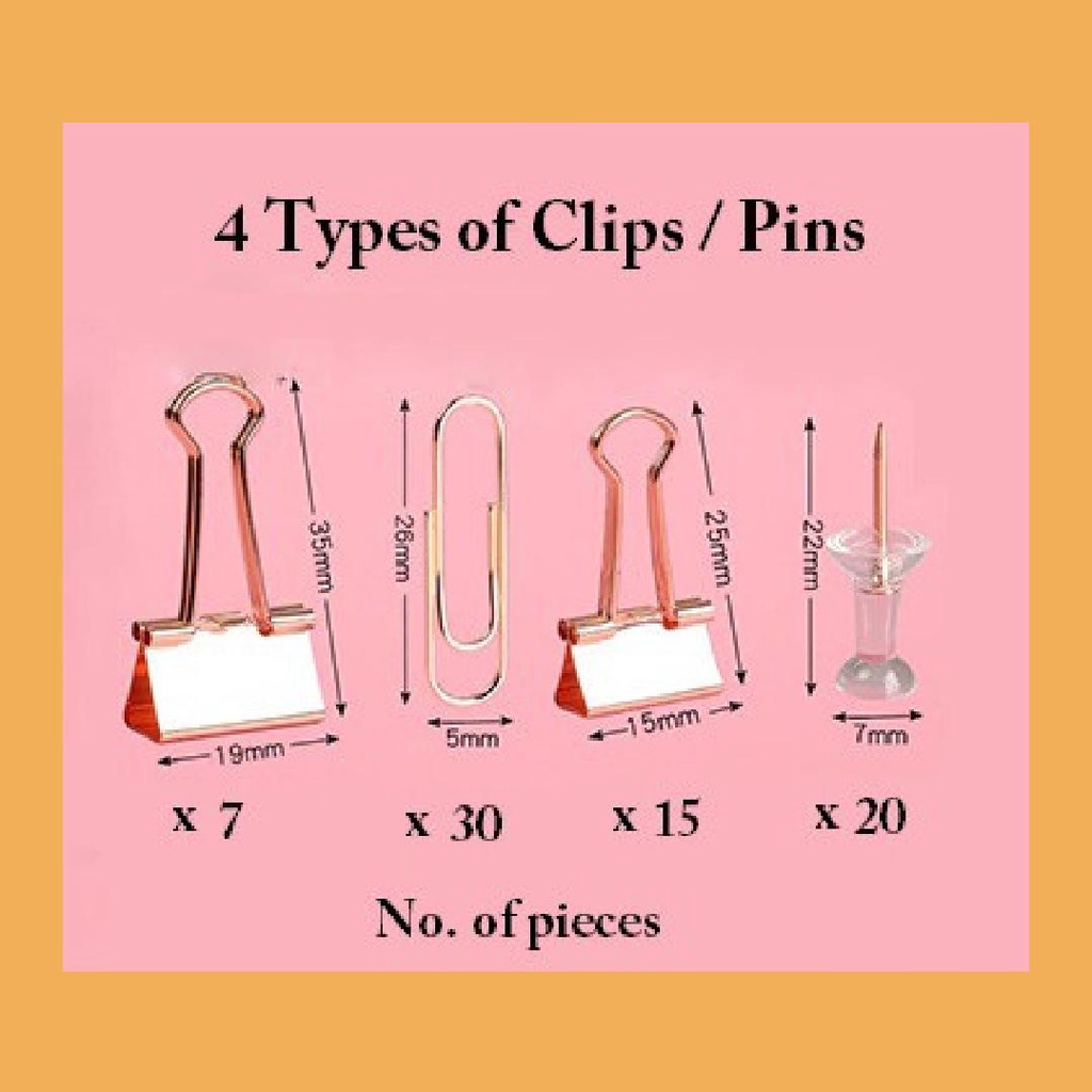 Elegant 4 in 1 Document Clip, Paper Clips and Pins Set (Binder Clip, Round Paper Clip, Push Pin)